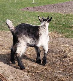 Disponibile a svezzamento giovane caoretyo di razza passiria colorazione bianco nero belle forme vendo scambio con capra o capretta femmina razza passiria o adamello