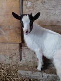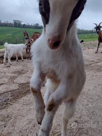 Vendo capretto maschio di due mesi dal carattere molto docile. Va d'accordo con gli altri animali, è abituato al pascolo e sarebbe un buon maschio da riproduzione. Contattate solo se veramente interessati e in possesso di un ambiente adeguato (recinto/area abbastanza grande).