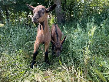 Vendo due capretti scamosciati delle Alpi allo svezzamento. Si accettano prenotazioni. Sono entrambi cozzi, ovvero senza corna. Per altre informazioni chiamare, non affaristi perditempo