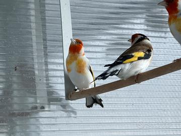 Cedo per esubero cardellino maschio eumo wk ( Mascherato) anno 2025 e cardellino mayor ancestrale probabile portatore di bruno anno 2025, ottimo ceppo, possibilità di spedizione in tutta Italia