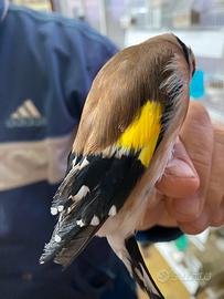 Come da foto cedo coppia di cardellini maschio con una piccola fava x femmina figlia di acianaci anno 2025 regolarmente anellati 250 la coppia