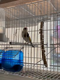 Salve a tutti vendo a malincuore cardellino padre acianico sciarpato con unghie bianche remiganti bianche e sotto piuma bianco il cardellino è del 2024 anellato Foi ..già a fatto il padre è un bel esemplare prezzo trattabile non fate perdere tempo gentilmente grazie