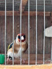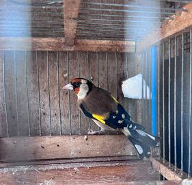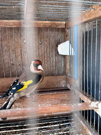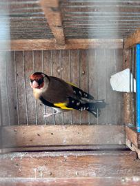 Bellisismo Cardellino maschio di un anno 2025, in ottima salute in forma e canta. Unico e solo, compresa gabbietta ,tolgo per motivi familiari. PREZZO NON TRATTABILE. Ottimo per fare ibridi incardellati canarini da voliera o cardellini .