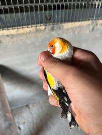 Scambio bellissima coppia di cardellini mayor con maschio eumo witkop portatore di Isabella e femmina Agata con un altra coppia di cardellini di diversa mutazione o con nostrani fasciati favati pezzati testa bianca o gola bianca No chiamate scrivetemi su WhatsApp