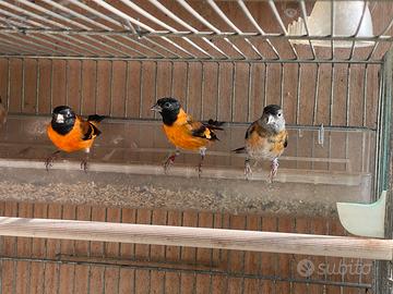 Cedo o scambio 2 coppie di Cardinalini del Venezuela femmine ancestrali 2023 maschi ancestrali 2024 di cui un maschio novello 2025 portatore di bruno pastello Scambio con coppia dí arlecchino portoghese