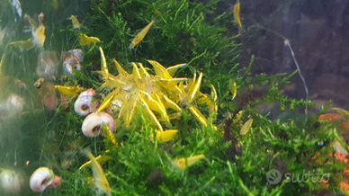 Disponibili splendidi esemplari di caridine Yellow fire, di un giallo intenso, gamberi di acqua dolce, allevate nelle mie vasche.