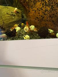 Gamberetti di acqua dolce bellissimi e utilissimi in acquario in quanto si nutrono di resti e microelementi sono dei veri e propri spazzini possono convivere con piccoli pesci queste in foto sono scarti di selezione allevati tutto insieme vengono venduti 10pz 15€ 20pz 20€ Vengono presi random e non si possono scegliere non chiedete sconti o di portarveli a casa gentilmente