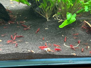 Vendo magnifiche caridine Red cherry, gamberetti per acquario tropicale di acqua dolce. 10 + 1 omaggio = 20euro 20 + 3 omaggio = 40euro 30 + 5 omaggio = 60 euro Vendibili anche pochi pezzi a 2 euro l'uno.
