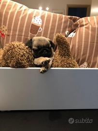 Dolcissimo e simpaticissimo cucciolo di Carlino di oltre due mesi di età, abituato alla traversina.