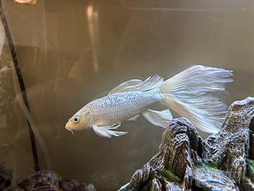 A malincuore vendo una splendida Carpa Butterfly Koi di circa due anni. Attualmente misura circa 30 cm e, data la sua crescita, il mio acquario - seppur di dimensioni discrete - non è più adeguato a ospitarla. Come tutte le carpe Koi, è un pesce docile e compatibile con altre specie, ma si consiglia vivamente l'inserimento in uno stagno, ambiente ideale per il suo benessere e il suo sviluppo. Insieme alla carpa Koi regalo due pesci rossi acquistati poche settimane fa, pertanto ancora piccolini.
