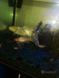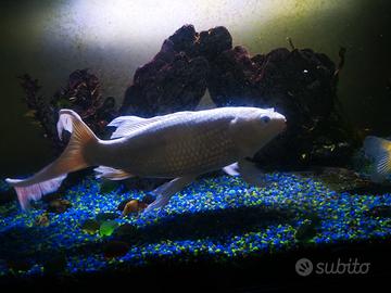 Vendo carpa koi completamente bianco platino senza macchie o difetti di squame a coda a ventaglio. Vendo perché purtroppo nel mio acquario comincia a soffrire il poco spazio e non è più adatto ad ospitarla, vorrei avesse una sistemazione migliore. Mai avuto malattie o problematiche, misura circa una 25ina di cm (non ho modo di mettere la misura precisa senza prenderla dall'acquario e causargli stress). Se interessati posso mandare altre foto o video.