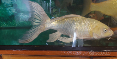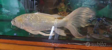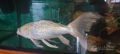 Vendo bellissima carpa koi Butterfly varietà Platinum Ogon, con colorazione bianca perlata lucida e pinne lunghe fluide. Misura circa 42 cm, in ottima salute, allevata con cura. Ideale per laghetti ornamentali o grandi acquari. Solo ritiro a mano.