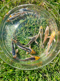 Vendo, o scambio carpe Koi, sono un allevatore amatoriale le koi sono belle e sane di circa 10_12 cm da riproduttori giapponesi , disponibilità di alcune centinaia naturalmente su numeri consistenti il prezzo cala ,sono già selezionate, quelle di seconda scelta le cedo a 1,50 con un minimo di 40 pezzi , sono sui 5-6 cm, disponibili anche misure più grandi, dai 20 ai 50 cm, possibilità di trasporto