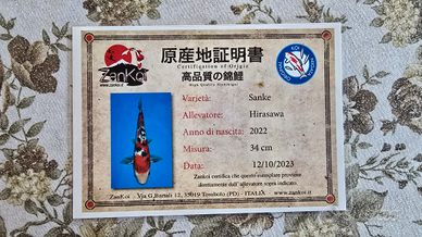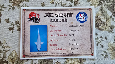 Carpe di provenienza giappone in ottima salute e taglia, presenza di certificato dell'allevatore come da foto Molti soggetti HQ Abituate anche a mangiare dalla mano Per info sul prezzo contattatemi al 3426631923