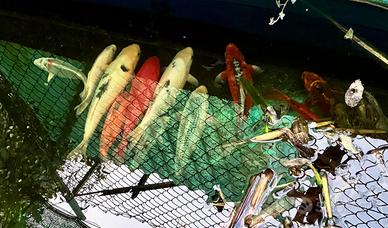 Vendo per chiusura laghetto un lotto di 14 carpe koi, sane e dai colori brillanti di circa 4 anni che misurano dai 25 ai 35 cm. In omaggio 1 grande pesce rosso.