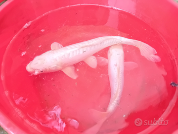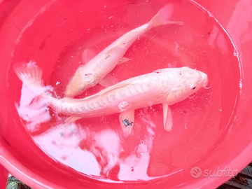 Disponibili le karpe koi in foto. La più grande 30cm 50 euro, la più piccola 22cm 35 euro. Prese insieme 75 euro. Ritiro a vigonza con sacco o secchio. Disponibili pesci rossi, bianchi e pezzati, pinne a velo e non, gambusie e medaka. Disponibili svariate ninfee e qualche pianta acquatica