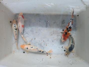 Vendo carpe koi nate nel mio laghetto annate 2022-2023. Ultime disponibili segnate con l'asterisco in foto. Misure da 25 ai 40 cm, prezzi dai 40 ai 80 euro. Sconti per acquisti multipli.