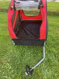 Carrello per cani rimorchio bici . Porte con cerniera e copertura frontale rimovibile. Connettore alla bicicletta universale e due ruote con battistrada testurizzato. Nuovo, solo montato. Pieghevole