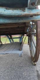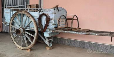 Bellissimo carro agricolo in ottimo stato di conservazione, anni 50' Targhetta matricola più tre targhette tasse pagate anni 1958 e seguente per lire 1000 Pianale buono, ruote conservate, completo di tutto, chiusura anteriore e posteriore staccabili, cassetta porta attrezzi più gondola sottocarro. Ottimo per agriturismo, azienda agricola, collezionismo oppure per arredare la vostra taverna, porticato o quant'altro .. Lunghezza totale circa 405cm altezza totale 180cm ca. Lunghezza capacità di carico 280cm larghezza 100cm ca. diametro ruote 165cm ca. Peso complessivo ? ? ? Il carro si trova a Viadana visibile senza impegno € 1900