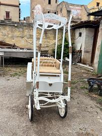 Salve a tutti vendo carrozzina per pony adatta per bambini,utilizzabile per passeggiate,comunioni battesimi ,compleanni prezzo in privato solo gente interessata no perditempo disponibile per ogni prova!