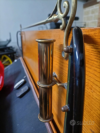 Scorrano carrozze propone carrozza modello phaeton esterazy in legno naturale con rifiniture in ottone attacco a pariglia Frisone andaluso murgese