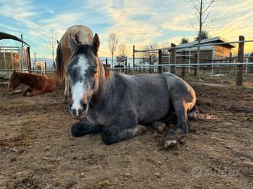 Vendo castrone Appaloosa colore Blue Roan di tre anni alto circa 1,53 cm, ottimo carattere, dona base alle tre andature.