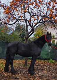 Cavallo frisone castrone, molto docile sia da terra che montato, ma con "motore " nonostante i suoi 19 anni!