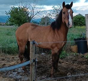 Vendo a malincuore per impegni universitari, castrone Quarter, anno 2009, documenti A.I.A. e bollettone di monta, basi reining ma utilizzato solo per passeggiate, abituato a stare sia in box che in paddock, cavallo serio e super equilibrato, zero paure, mai fatto una scortesia, esce in passeggiata sia solo che in gruppo senza problemi, mai calciato, abituato alla tosatura, al traffico, clacson, camion, tombini, passaggio a livello, corsi d'acqua, cani, ecc.. gode di ottima salute, cavallo adatto a tutti. Astenersi perditempo e affaristi, chi è veramente interessato mi contatti telefonicamente e manderò altre foto e video.