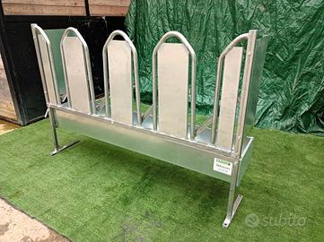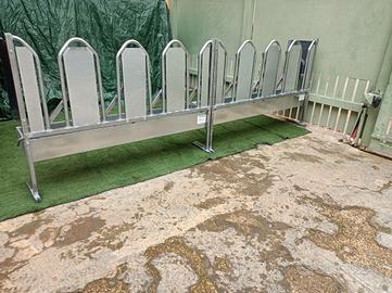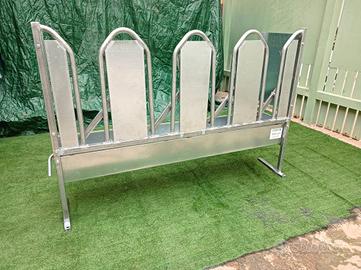 Autocattura ovini e caprini per la mungitura, pannello da 150 cm componibile completa di vasca mangiatoia n,4,8,12 posti liberi con chiusura a scatto e sblocco tramite leva laterale lunghezza 150 cm altezza 100