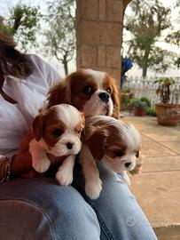 Cuccioli di Cavalier king Ciarles Spaniel tricolor e blenheim disponibili, saranno ceduti a 60/70 giorni, con primo vaccino sverminazione completa microchip pedigree Enci di alta genealogia comprese le certificazioni dei genitori testati ed esenti dalle principali patologie della razza, saranno corredati da libretto sanitario e kit pappa. Cuccioli selezionati per tipicità e carattere molto affettuoso ed equilibrato, grazie al quale sono considerati fra le razze più adatte alla pet Therapy. Amano il contatto umano, percepiscono le emozioni regalando conforto e coccole infinite.Vi garantiamo assistenza nella crescita del cucciolo, consegnamo in tutta Italia affidandoci a personale competente con mezzi omologati, siamo disponibili alle videochiamate e previo appuntamento è possibile venire in allevamento. 333.3902885