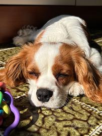 Ciao, mi chiamo Yago e sono un bellissimo cucciolo di Cavalier king Charles spaniel.. Ho 7 mesi e sto iniziando a cercare una fidanzatina in modo da potermi accoppiare nel prossimo inverno.... Sono puro al 100% Ho il pedigree ENCI e non ho nessuna malattia genetica... Se siete interessati contattate il mio papà per tutte le informazioni ??????