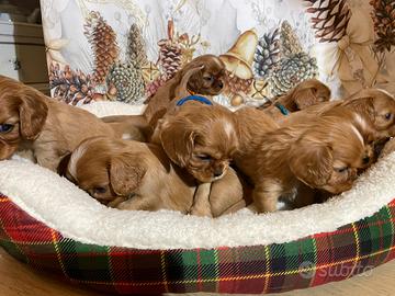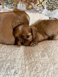 Cavalier King Ruby, cuccioli con pedigree Enci. Genitori esenti, certificati lussazione della rotula e oculopatie test genetici cherato congiuntivite , pelo riccio, caduta improvvisa. Ecocardio, Dna depositato. Entreranno nella nuova famiglia con ciclo di sverminazione adeguato, microchip, primo vacino e visita veterinaria. È una razza usata anche per la pet therapy. Ottimi da compagnia e passeggiate.