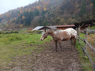 Vendo cavalla Appaloosa, certificato bollino oro, test genetico tutto negativo, ottimo carattere, addestrata a sella ma ferma da anni, attualmente vuota, 1,55 al garrese, si trova in Trentino comune di Condino, per info contattarmi 3495886316