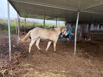 Cavalla Appalosa di 4 anni colore cremello, sana e bravissima . Cavalla tranquilla e socievole, abituata ai bambini e a passeggiate con altri cavalli. Sale tranquillamente sul trailer. Ideale per trekking e passeggiate in sella. Molto intelligente.Nessuna scortesia.No documenti di razza. Vendo ad euro 2500. No perditempo, no curiosi e collezionisti di foto e video. Non scambio. Visionabile a Pietraperzia. Chiamate solo se avete la possibilità economica di comprarla. Tel. 3281064713