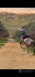 . Cavalla Appendix (mamma quarter ,padre psi) 4anni Va attaccata a calesse Ben domata a sella ,Smazzettatissima ,lavora bene in campo alle 3 andature , spettacolare e instancabile in passeggiata , in trekking impegnativi ,non ha paure non ha mai fatto accenni di rifiuti , mai un calcio ,un morso , sgroppata o impennata . Non ha vizi rebidori , vive bene sia in box che al pascolo con altri cavalli . È molto grintosa , scattante e a sangue caldo , quindi è adatta a cavaliere esperiente . Predisposizione a trekking , gimkane , pali , giostre , reining . Qualità morfologiche e caratteriali introvabili , cavalla per gente capricciosa . 4500 tratt . Doc apa. No commercianti o perditempo , no permute . 3899816954 Disponibile a qualsiasi prova , visita veterinaria . Brava nella ferratura , sale e viaggia sul trailer .