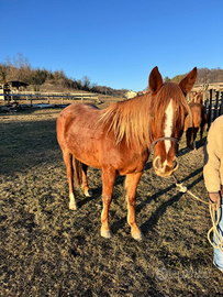 La cavalla è domata e lavora tutti i giorni con noi.