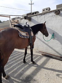 Vendo cavalla domata di 4 anni sale nel trailer senza problemi si fa ferrare in passeggiata nessun problema con altri cavalli si accettano permute con attrezzi agricoli tipo trincia erba o aratro a sollevatore bivomere per trattore 60 cavalli fate proposte