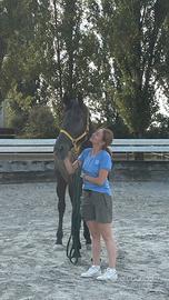 La cavalla è buona e collaborativa, molto brava nel lavoro in piano (cessioni, spalla in dentro e altre figure) e in passeggiata sia sola che in compagnia.