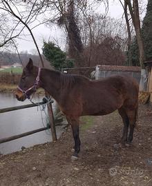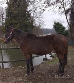 Cavalla femmina dolcissima adatta anche a principianti abituata sia alla americana che inglese ha circa 20 anni alta 1,65 circa possibilità anche di trasporto