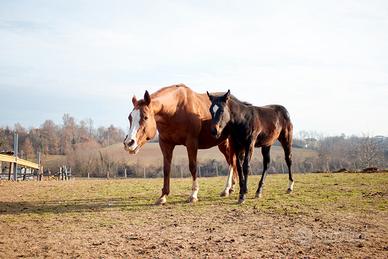 Vendo cavalla quarter/appaloosa di anni 15 con sua puledra di 3 mesi (padre paint), nera con stella in fronte.