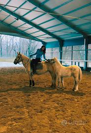 Il suo puledro Mango, 2 mesi, è già super bravo: si lascia spazzolare, coccolare e gestire con serenità. È curioso, equilibrato e molto affettuoso.