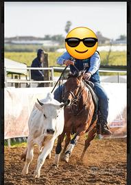 Cavalla quarter horse anno 2016, linea da vitello, ottimo carattere con molto cow sense e una buona esperienza nel team penning, brava anche in passeggiata. Buona anche come fattrice, ha già partorito. Per informazioni contattatemi.