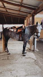 Vendo a malincuore pony irlandese femmina del 2013 alta 1.50 al garrese, lavora monto bene in piano, sul salto ha poca esperienza ma è molto rispettosa delle barriere, brava in passeggiata da sola e in gruppo, ha partecipato a molte gare di mounted games e non ha mai avuto infortuni durante tutta la sua carriera agonistica. Caratterialmente calda ma buona e disponibile nel lavoro, non adatta ai principianti alle prime armi. Nessun tipo di problema con trailer o van