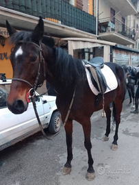 Vendo cavalla montata e attaccata di anni 7,super mansueta adatta a principianti,ottima per scuola e passeggiate...coraggiosa in campagna e in città,zero scortesie.... qualsiasi prova e visita veterinaria, disponibilità di trasporto in tutta Italia
