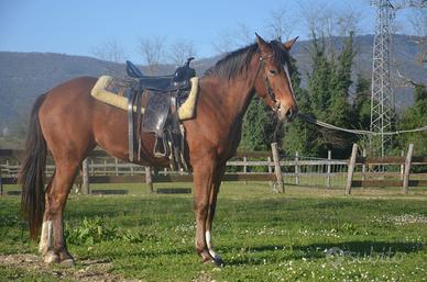 Disponibile cavalla paint horse no color baia quasi 4 anni ...bellissima struttura documenti americani..appena domata e montata..brava ,meglio persone con minimo di esperienza..disponibili video..per info si preferisce contatto telefonico o whatsapp al 3465782657..la cavalla si trova a udine..no perditempo o curiosi