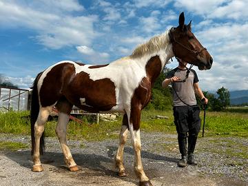 Cavalla pezzata del 2023 1.65 al garrese Cavalla domata alle 3 andature, ma va consolidata È già uscita in passeggiata Non adatta ai principianti
