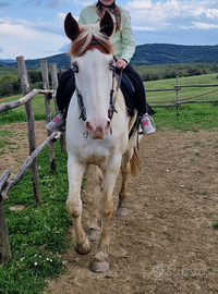 Vendesi cavalla di 13 Anni pezzata con occhi azzurri, alta circa 152/153 al garrese, non calcia, non morde, mai sgroppato, bravissima per lavoro in rettangolo e piccoli saltini, adatta a principianti anche a bambini. Vendo solo ad amanti degli animali NO Commercianti la cavalla è non DPA .