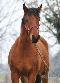 Abituata insieme ad altri cavalli sia in branco che in box, molto affettuosa.