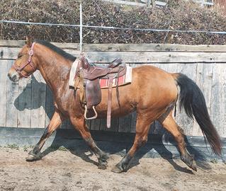 Disponibile cavalla incrocio Quarter/Haflingher di 5 anni,sanissima, carattere sincero con buon addestramento, esce in passeggiata Altezza 1.50 In regola con tutta la documentazione sanitaria Solo contatto telefonico 3338645012 grazie Prezzo 3800