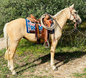 Vendo Quarter palomina solo doc apa di 3 anni domata alle 3 andatura 1.55 al garrese brava in campo e in passeggiata da sola e in compagnia per info solo WhatsApp o chiamate 3317436829